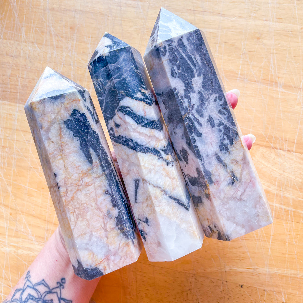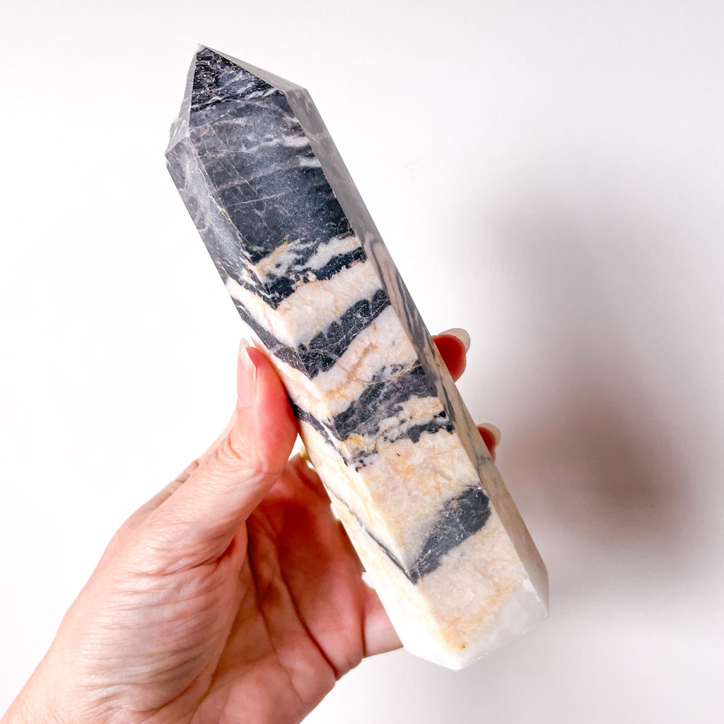 Purchase Zebra jasper crystal point tower XL online now from Six things shop Australia.